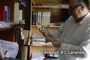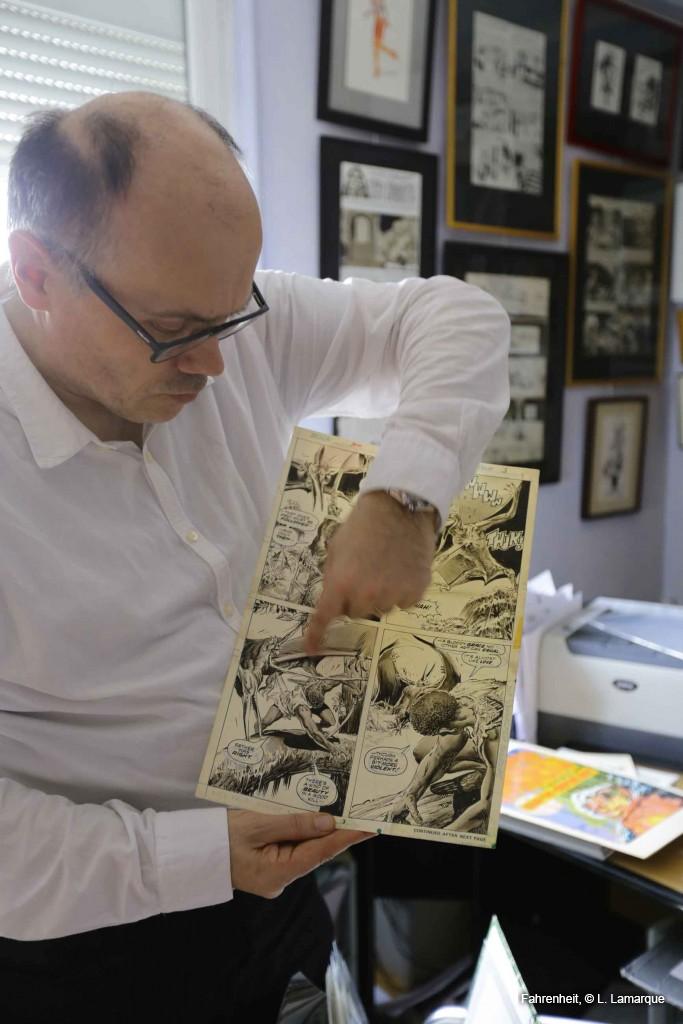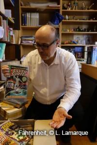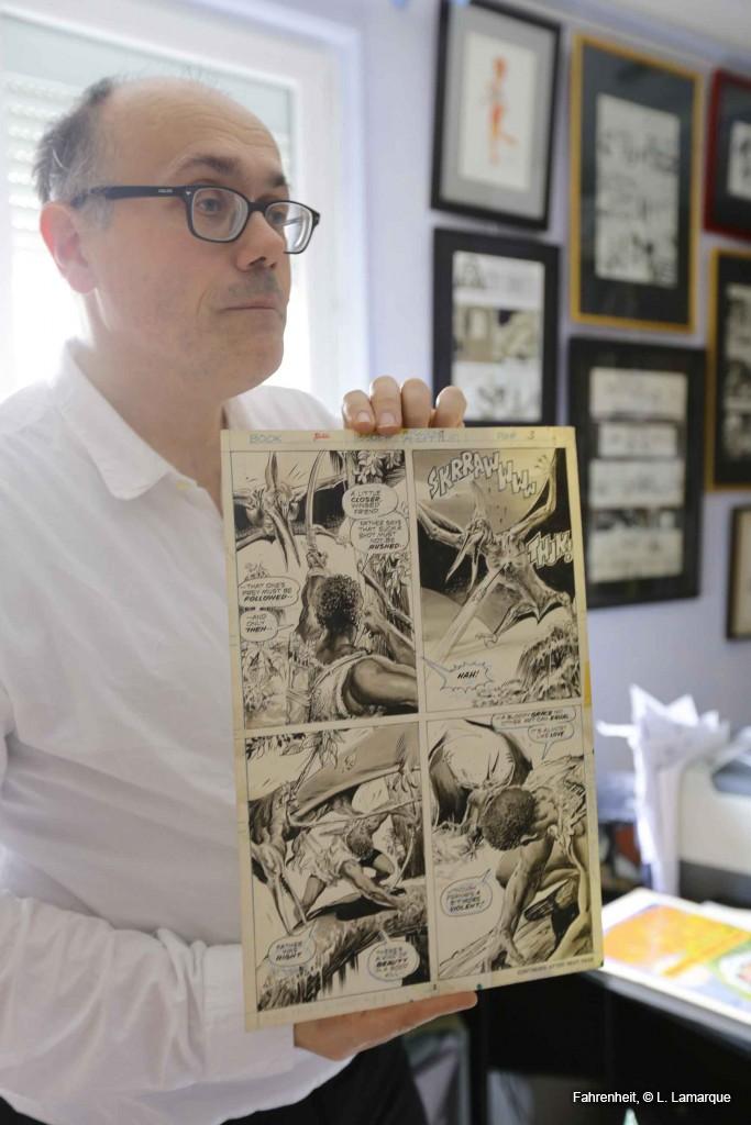 Profondément marqué par la bande dessinée américaine depuis son plus jeune âge, Jean-Paul Gabilliet est allé jusqu’au bout de sa passion. Professeur de littérature américaine à l’Université Montaigne de Bordeaux, il est l’auteur d’une histoire culturelle des comic-books américains, Des Comics et des hommes, et d’une biographie de Robert Crumb, intitulée R.Crumb. Collectionneur de planches originales, il nous reçoit dans le bureau où sont concentrées ses ouvrages de recherches, ses fascicules de comic-books, ses recueils américains et ses albums franco-belges.
