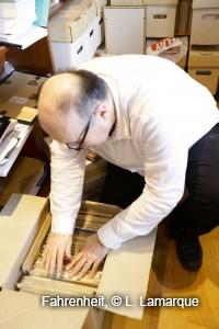 Dans le domaine américain, j’ai ici les graphic novels, les recueils. Puis les archives Crumb. Là haut, dans les caisses, il y a des revues.