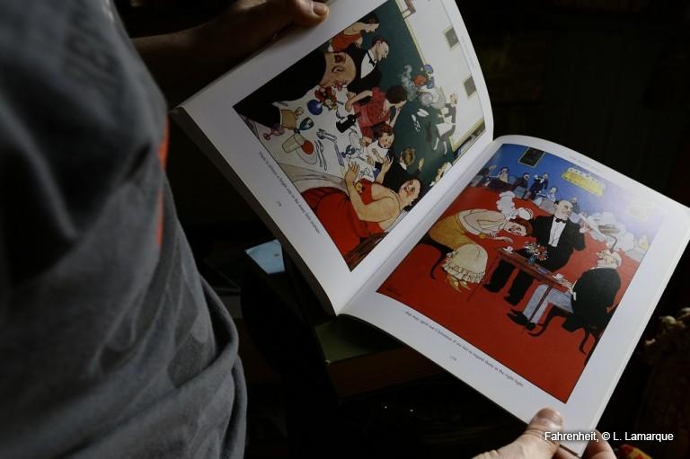 Là, j’ai tous les gens qui tournent autour de l’illustration américaine des années 70 : Wrightson, Kaluta, Frazetta,… J’ai aussi beaucoup de livres sur le cinéma d’animation, les affiches de cinéma anciennes ou les illustrateurs américains du début 20e.